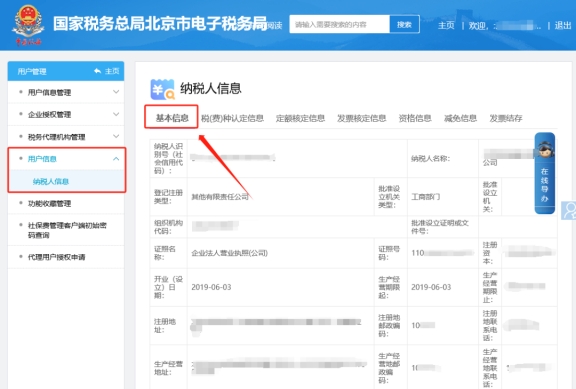 二、納稅人信息—基本信息可查看信息。