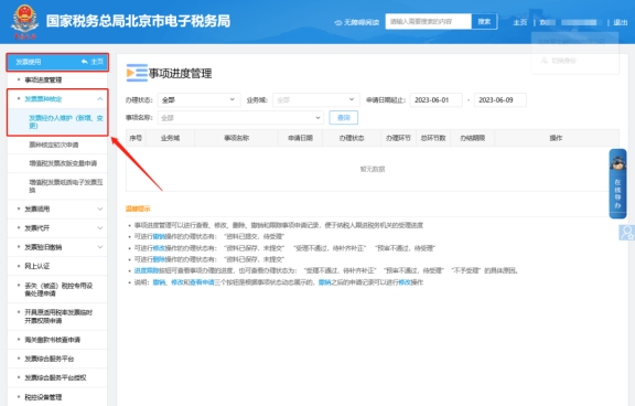 二、發(fā)票使用—發(fā)票票種核定—發(fā)票經(jīng)辦人維護(hù)(新增、變更)。