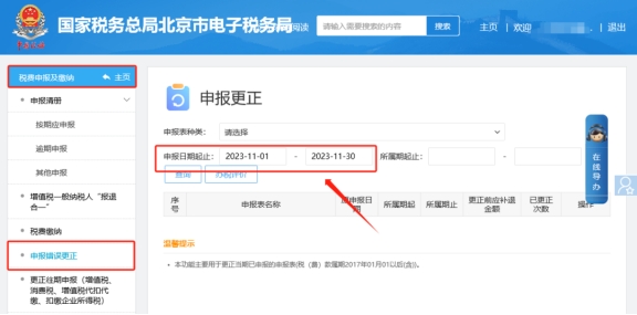 二、稅費(fèi)申報(bào)及繳納—申報(bào)錯(cuò)誤更正,修改申報(bào)月份,點(diǎn)擊更正財(cái)報(bào)即可。