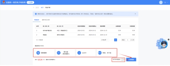 進(jìn)入繳稅頁(yè)面后,可以看見(jiàn)需要繳納的稅款明細(xì)及支付方式,目前支付方式包含銀聯(lián)繳費(fèi)、銀行端(查詢(xún)繳款)、云閃付、微信、支付寶等方式。也可以跨境繳稅。選擇完方式后,點(diǎn)擊立即繳款。