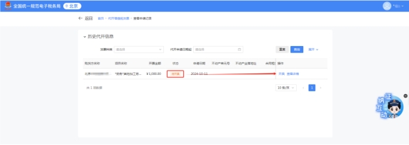 進(jìn)入后,可以看見(jiàn)自己審核通過(guò)的發(fā)票,可以查看詳情及繳稅,點(diǎn)擊繳稅,進(jìn)入繳稅流程。