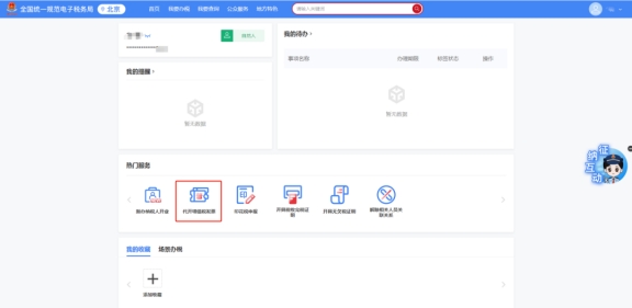 進(jìn)入后,點(diǎn)擊熱門(mén)業(yè)務(wù)-代開(kāi)增值稅發(fā)票。