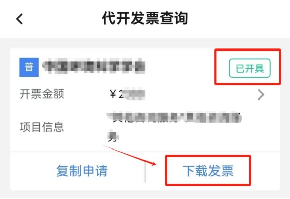 再次點(diǎn)擊首頁(yè)“代開(kāi)增值稅發(fā)票”,點(diǎn)擊“代開(kāi)發(fā)票信息查詢(xún)”,選擇提交申請(qǐng)的起止日期,點(diǎn)擊頁(yè)面下方的“查詢(xún)”。在查詢(xún)結(jié)果中找到本次提交的申請(qǐng),該條申請(qǐng)右上角狀態(tài)為“待開(kāi)具”,點(diǎn)擊“開(kāi)具發(fā)票”,右上角狀態(tài)變?yōu)椤耙验_(kāi)具”,點(diǎn)擊“下載發(fā)票”,即可查看并下載該發(fā)票(您可點(diǎn)擊發(fā)票預(yù)覽頁(yè)面右上角“...”將發(fā)票分享至對(duì)方)。