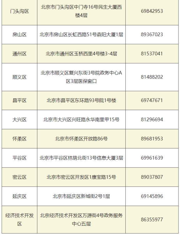 北京市各區(qū)醫(yī)保經(jīng)辦電話(huà)
