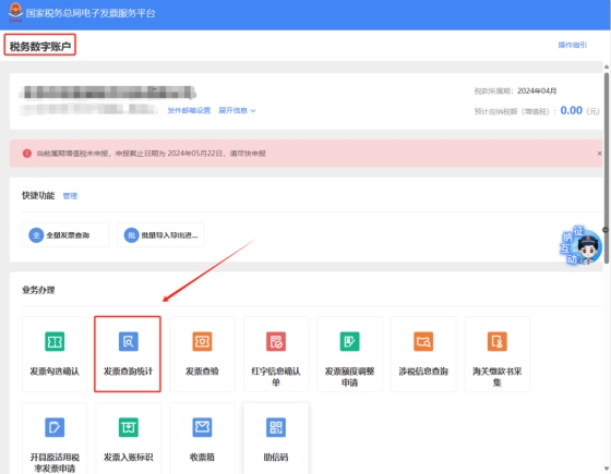 二、稅務(wù)數(shù)字賬戶—發(fā)票查詢統(tǒng)計(jì)。
