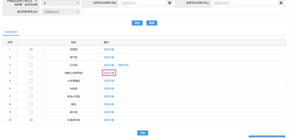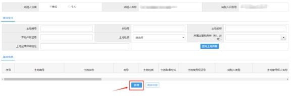 答:您好,請點擊【地方特色】-【我要辦稅】-【稅費申報及繳納】-【房產(chǎn)稅、城鎮(zhèn)土地使用稅申報】-【財產(chǎn)和行為稅納稅申報】,進入后選擇“城鎮(zhèn)土地使用稅”后方【稅源采集】進入;點擊屏幕下方【新增】,填寫納稅人基礎(chǔ)信息和稅源基礎(chǔ)信息,點擊屏幕下方【保存】;點擊【維護應(yīng)稅信息】進入土地信息界面,填寫土地相應(yīng)信息,若享受減免稅優(yōu)惠政策,點擊下方【新增】進行維護后,點擊【保存】,完成城鎮(zhèn)土地使用稅稅源信息采集。
