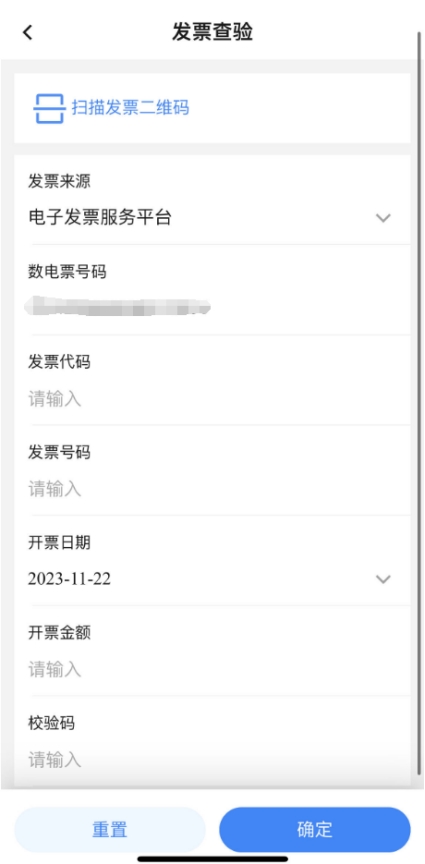 進(jìn)入“發(fā)票查驗”頁面,可通過掃描已開具發(fā)票的票面二維碼帶出相關(guān)信息,也可在頁面手動錄入發(fā)票相關(guān)信息后點(diǎn)擊【確定】按鈕;若為本人發(fā)票,則只錄入發(fā)票號碼就可以查驗,若為第三方發(fā)票,則提示填入開票日期及開票金額(含稅金額)后進(jìn)行查驗。