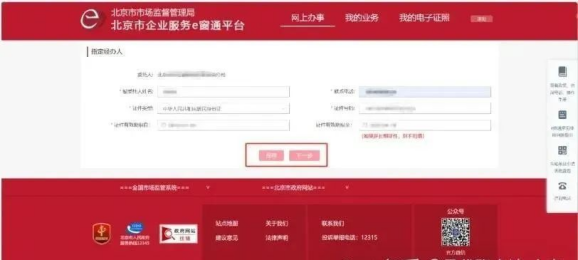 步驟三:填寫指定的經(jīng)辦人信息,其中*為必填項(xiàng),然后點(diǎn)擊“保存”并選擇“下一步”。