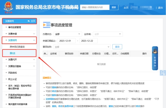二、發(fā)票使用—發(fā)票領(lǐng)用—票E送。