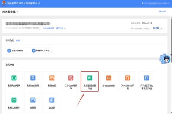 二、稅務(wù)數(shù)字賬戶—發(fā)票額度調(diào)整申請(qǐng)。