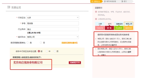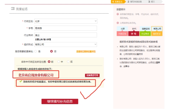 5、目前北京是自助核名,如果查詢不重名,就可以是提交審核名字,提交后,10-30分鐘就會有核名結(jié)果,但名字最終能否使用,最終注冊的時候,還需要工商局窗口人工審核。有可能會駁回使用。