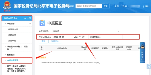 二、稅費(fèi)申報(bào)及繳納—申報(bào)錯誤更正,修改申報(bào)月份,點(diǎn)擊更正財(cái)報(bào)即可。