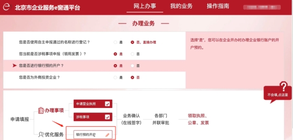 申請營業(yè)執(zhí)照及相關(guān)稅務(wù)事項已全部完成。如需辦理銀行開戶,請點(diǎn)擊預(yù)約銀行開戶。