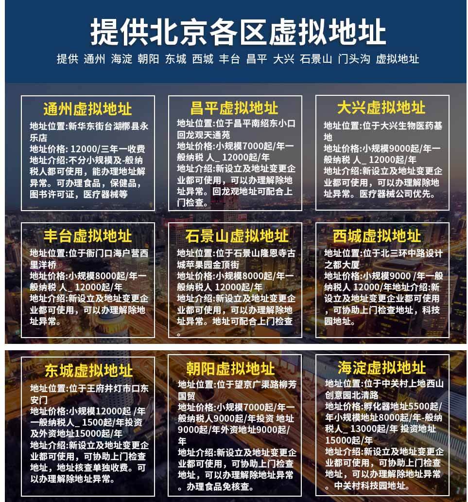 什,北京注冊(cè)公司免費(fèi)地址平谷,么是虛擬注冊(cè)地址地址(集中工作區(qū)或,在北京注冊(cè)公司無(wú)地址怎么辦,公司孵化器)?通俗來(lái)講“虛擬注,北京出租公司注冊(cè)地址,冊(cè)地址”就是你不需求實(shí)際租賃一間工作室,北京注冊(cè)公司地址費(fèi)用,來(lái)注冊(cè)公司、而由工商局、稅完結(jié)工作,北京公司代辦公司注冊(cè)地址,作局準(zhǔn)許的“公司孵化器”供給給,北京注冊(cè)公司有哪些地址,你一個(gè)房間號(hào)用來(lái)公司注冊(cè)、其作用只是用,在北京注冊(cè)分公司需要實(shí)體地址,來(lái)工商注冊(cè),處理營(yíng)業(yè)執(zhí)照用的,但是,北京無(wú)地址公司注冊(cè)多少費(fèi)用,你不可以以來(lái)注冊(cè)地工作的一種服,北京公司注冊(cè)地址收費(fèi),務(wù)。