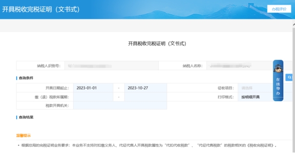 注:【開(kāi)具稅收完稅證明(文書(shū)式)】沒(méi)有開(kāi)具次數(shù)限制。