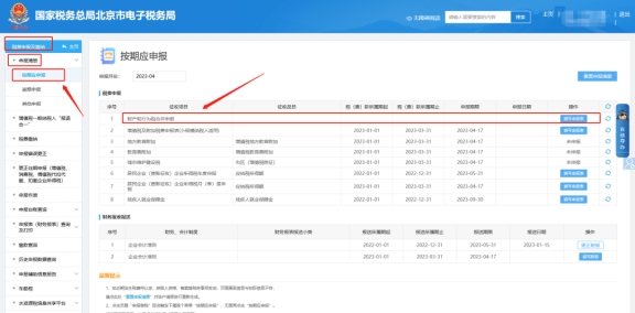 二、稅費申報及繳納—按期應(yīng)申報—財產(chǎn)和行為稅合并申報—點擊填寫申報表。