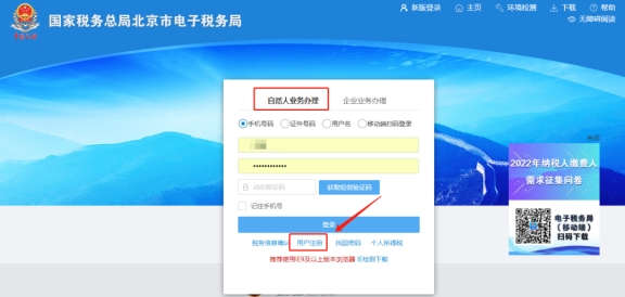 在新版登錄界面,點(diǎn)擊自然人業(yè)務(wù)下方【用戶注冊(cè)】;進(jìn)入賬戶注冊(cè)界面。勾選“我已閱讀并同意《個(gè)人信息保護(hù)告知書》《人臉識(shí)別服務(wù)協(xié)議》”,點(diǎn)擊“下一步”;在校驗(yàn)身份信息頁(yè)面填寫姓名、證件類型、證件號(hào)碼、性別、國(guó)籍(地區(qū)), 點(diǎn)擊下一步,拖動(dòng)滑塊驗(yàn)證;基本信息填寫可自行設(shè)置密碼,密碼設(shè)置要求長(zhǎng)度為8-16個(gè)字符且必須包含數(shù)字、字母(區(qū)分大小寫)、特殊字符(包括.@$% *#_+-&^)三者中至少兩種,填寫手機(jī)號(hào),點(diǎn)擊“獲取驗(yàn)證碼”。查收手機(jī)短信,填寫短信驗(yàn)證碼,點(diǎn)擊下一步;進(jìn)行人臉識(shí)別驗(yàn)證??蛇x擇“稅務(wù)APP掃碼認(rèn)證”,也可選擇“個(gè)人所得稅APP掃碼認(rèn)證”。最后人臉驗(yàn)證成功提示注冊(cè)完成即可。