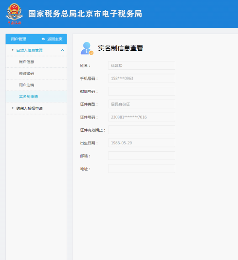 9.? 納稅人關(guān)聯(lián)成功后,可進(jìn)行實(shí)名制信息的查看。