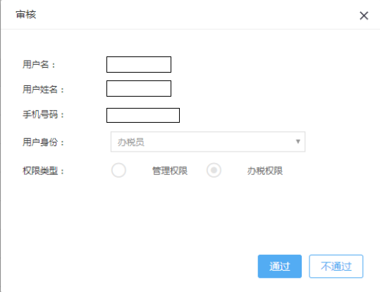 5)? 納稅人查看審核后的信息后,點(diǎn)擊“通過”按鈕,顯示企業(yè)確認(rèn)成功的提示框。