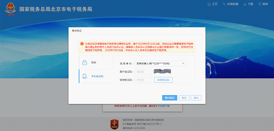 目前也可通過點(diǎn)擊“跳過驗(yàn)證”按鈕,跳過人員登錄方式,直接進(jìn)入電子稅務(wù)局首頁(yè)界面;