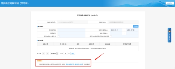 三、在此界面下方的“溫馨提示”處點擊【稅收完稅證明(表格式)換開】進入查詢開具。