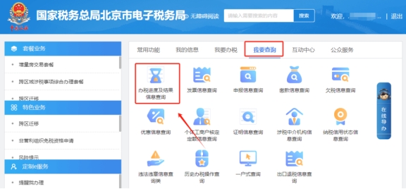 一、我要查詢—辦稅進(jìn)度及結(jié)果信息查詢。