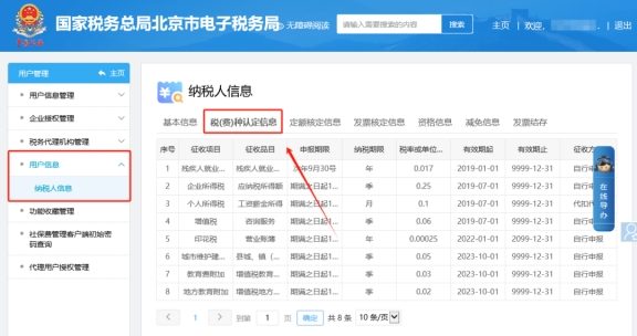 二、用戶信息—納稅人信息—稅(費(fèi))種認(rèn)定信息查看。