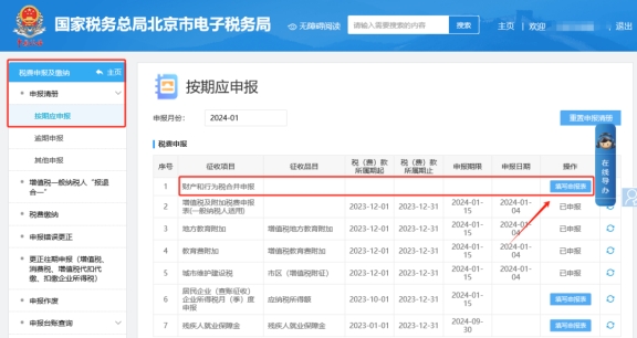 二、稅費(fèi)申報及繳納—申報清冊—按期應(yīng)申報—財產(chǎn)和行為稅合并申報。
