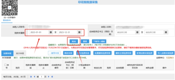 六、新增稅源信息保存成功后系統(tǒng)自動返回按期申報界面,根據(jù)查詢條件,選擇稅款所屬期2023年1月1日至2023年12月31日后點(diǎn)擊【查詢】。