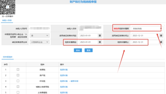 二、納稅人信息處“請選擇稅款所屬期”選擇[自選],在稅款所屬期處選擇2023年1月1日至2023年12月31日。