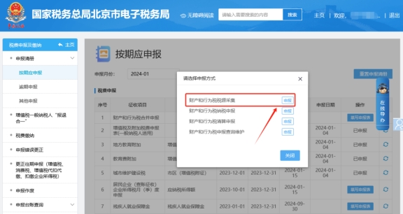 答、您好,請您點(diǎn)擊【我要辦稅】—【稅費(fèi)申報及繳納】—【按期應(yīng)申報】—【財產(chǎn)和行為稅合并申報】