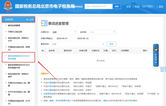 二、證明開具—服務貿易等項目對外支付稅務備案。