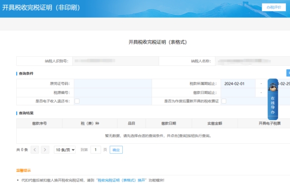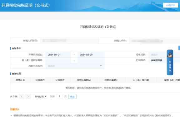 三、開(kāi)具稅收完稅證明(表格式)頁(yè)面查詢(xún)開(kāi)具。