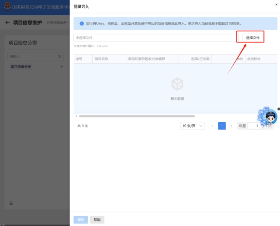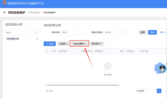 三、【項目信息維護】與【客戶信息維護】模塊均支持“稅控批量導入”功能。