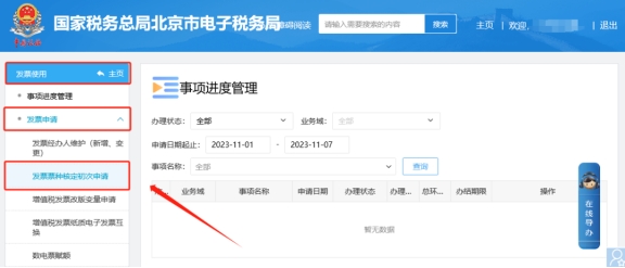 二、發(fā)票使用—發(fā)票申請—票種核定初次申請模塊申請紙質發(fā)票票種。