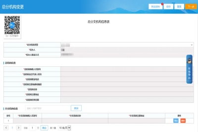 三、總分支機構(gòu)信息表頁面,企業(yè)如果是總公司,填寫下一級機構(gòu)信息是分公司的信息,上一級機構(gòu)信息不需要填寫(企業(yè)如果是分公司,填寫上一級機構(gòu)信息是總公司信息,下一級機構(gòu)信息不需要填寫)。