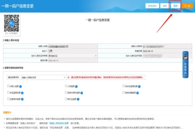 三、一照一碼戶信息變更頁面,點擊右上角的“重置”重新填寫需要變更的信息提交申請即可。