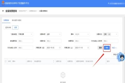 三、 全量發(fā)票查詢頁面,選擇相應(yīng)的查詢條件,點擊“查詢”來查看相關(guān)發(fā)票。如需批量下載已開具的數(shù)電票,請先選中想要下載的發(fā)票,并點擊“批量下載”按鈕進行下載。