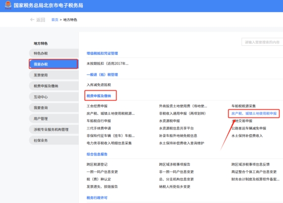 新電子稅局中外省企業(yè)持有北京房產(chǎn)應(yīng)該如何登錄,登錄后按照什么路徑申報房產(chǎn)稅、城鎮(zhèn)土地使用稅?