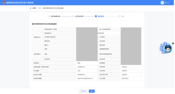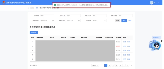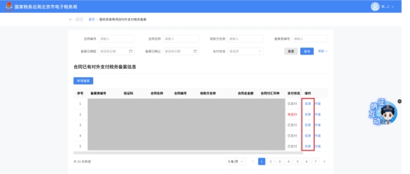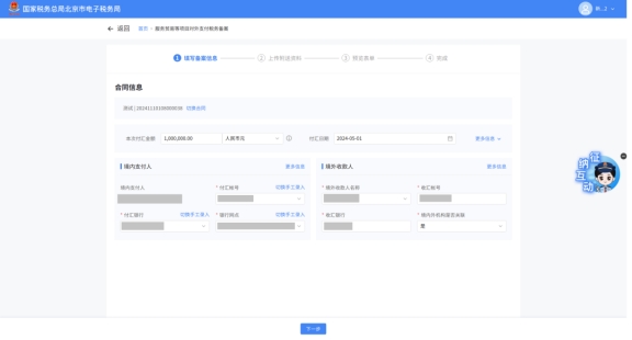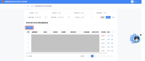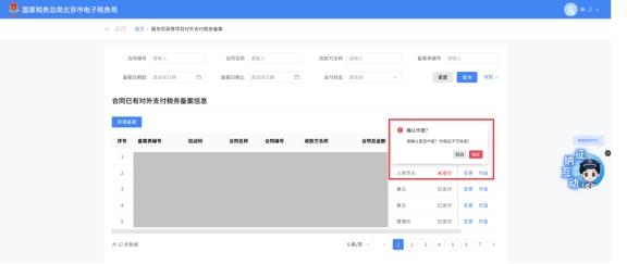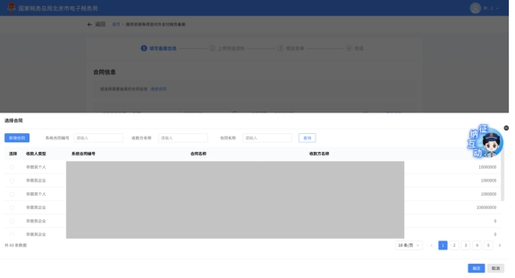 (2)選擇需要進行對外支付稅務備案的合同;無合同的情況下可以點擊“新增合同”按鈕,進行合同新增;