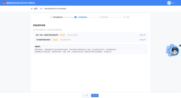 (4)上傳附送資料后,點擊“下一步”;