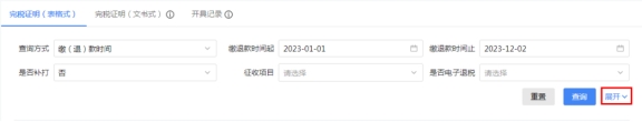 點(diǎn)擊【展開】,納稅人可根據(jù)實(shí)際情況選擇條件進(jìn)行查詢。