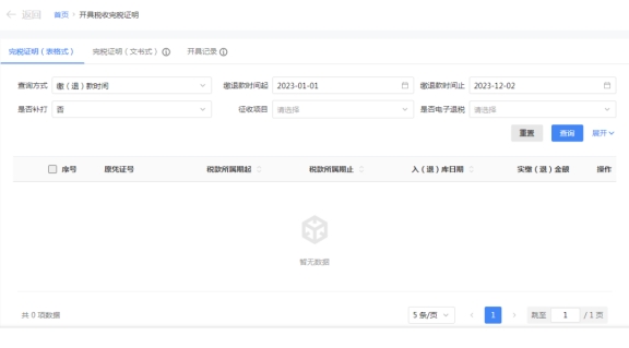 答:新電子稅局里支持開具表格式完稅證明和文書式完稅證明,都整合到同一個(gè)模塊【開具稅收完稅(費(fèi))證明】。