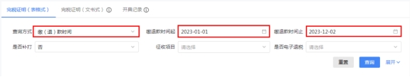 點(diǎn)擊選擇查詢方式為稅(費(fèi))屬期或繳(退)款時(shí)間,選擇查詢?nèi)掌谄鸷筒樵內(nèi)掌谥?或稅款所屬期起止)。