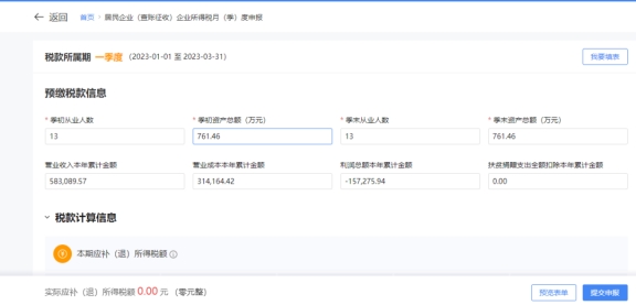 答:進(jìn)入申報界面后,如您已報送同期財務(wù)報表,系統(tǒng)自動獲取財務(wù)報表信息對“營業(yè)收入”、“營業(yè)成本”、“利潤總額”本年累計金額進(jìn)行預(yù)填;如預(yù)填數(shù)據(jù)與實(shí)際存在差異您可對預(yù)填數(shù)據(jù)進(jìn)行修改。