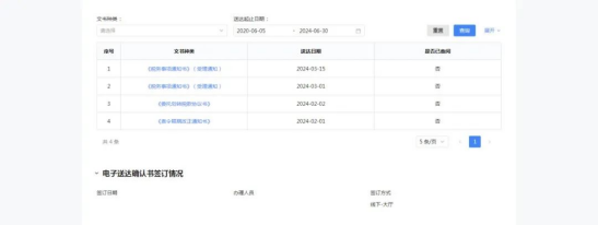 登錄新電子稅局后,您可點(diǎn)擊【我要查詢】-【稅務(wù)文書電子送達(dá)查詢】-【稅務(wù)文書送達(dá)確認(rèn)】,選擇文書種類、送達(dá)起止日期、是否已查閱等條件,點(diǎn)擊【查詢】查詢已送達(dá)的文書。