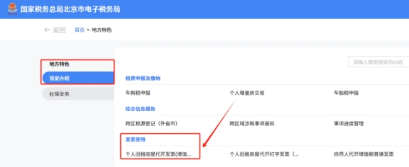 二、我要辦稅—發(fā)票使用—個(gè)人出租房屋代開(kāi)發(fā)票(增值稅電子普通發(fā)票)。