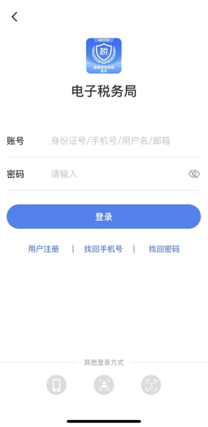 對(duì)于已有電子稅務(wù)局或稅務(wù)APP賬號(hào)的用戶,直接進(jìn)行用戶登錄。登錄方式可選擇賬密登錄、短信登錄、掃臉登錄、指紋/面容登錄。