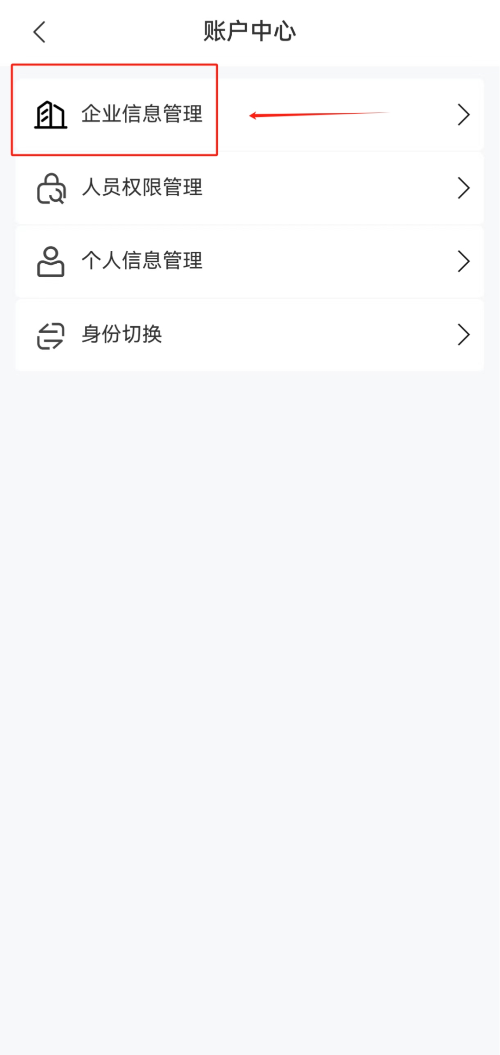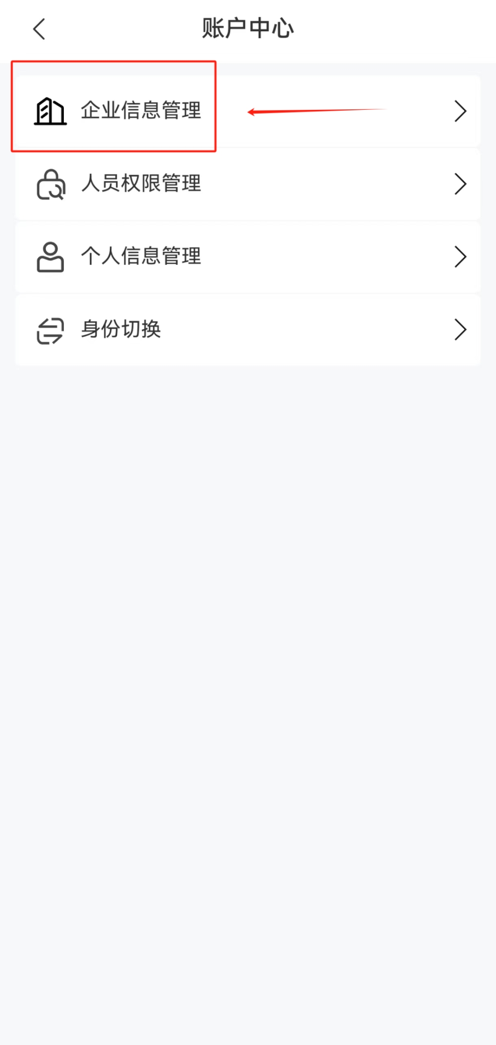 用戶以企業(yè)身份登錄或切換企業(yè)身份(如何切換身份請見下文身份切換),可通過【賬戶中心】進(jìn)行企業(yè)信息管理。