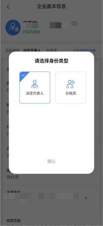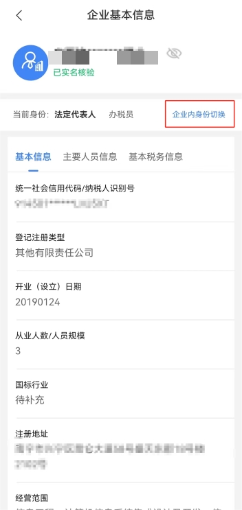 以企業(yè)身份登錄后,進(jìn)入賬戶中心頁面后。點(diǎn)擊選擇“企業(yè)信息管理”“當(dāng)前身份”展示自然人在該企業(yè)下的身份,加粗顯示的為當(dāng)前登錄身份。點(diǎn)擊“企業(yè)內(nèi)身份切換”,選擇切換的身份,點(diǎn)擊確認(rèn)即可完成企業(yè)內(nèi)身份切換。